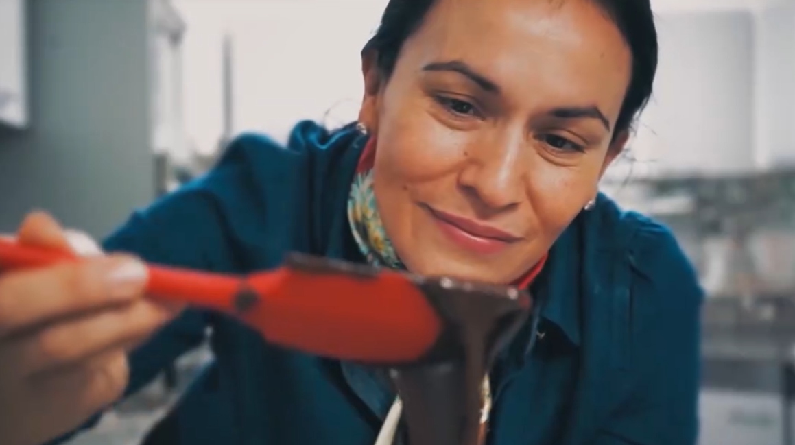 "Yo siempre digo que mi chocolate es como una pantalla, porque lo que busco es que la gente vuelva a mirarse. Mirarse así mismo, con amor, cuidando lo que unos es, su cuerpo, su estado anímico, sus ganas de vivir, pero haciendo una mirada de nuestra perspectiva, y que mejor que hacerla con un chocolate amargo que busca conectar con las raíces, con la esencia, con la madre tierra y con la familia".